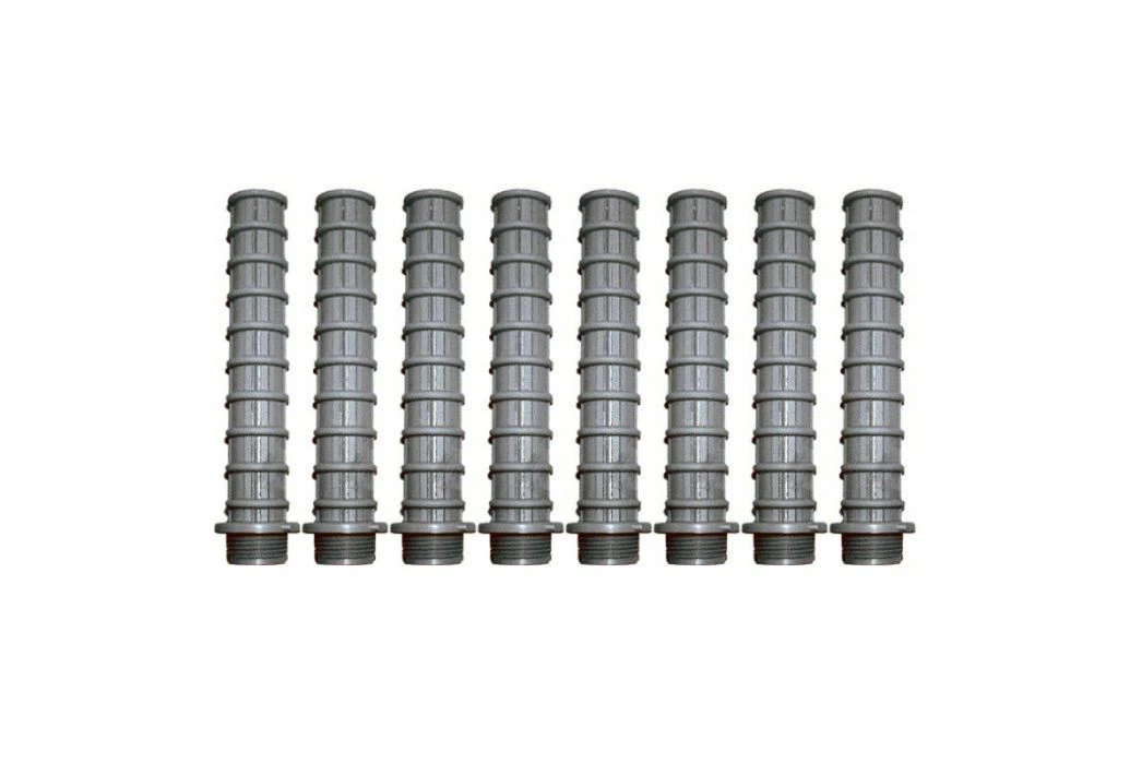 AstralPool Cantabric zandfilter zeef set 8 stuks ¾” x 160 mm is een origineel vervangonderdeel. De AstralPool zeef set is ter vervanging van versleten collectorarmen voor de AstralPool Cantabric zandfilter (side mount & top mount modellen tot Ø 500 mm) en de AstralPool Millennium zandfilter (side mount & top mount tot Ø 560 mm). Deze set van 8 stuks vervang je in een keer alle collectorarmen die op het filter zijn gemonteerd. Door het vervangen van de collectorarmen met een origineel vervangonderdeel herstel je de oorspronkelijke filtercapaciteit van de zandfilter.