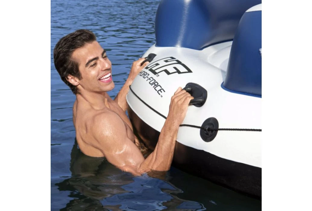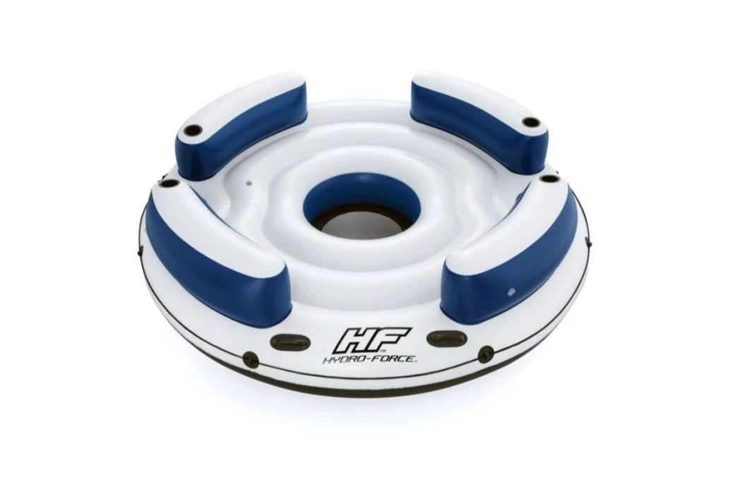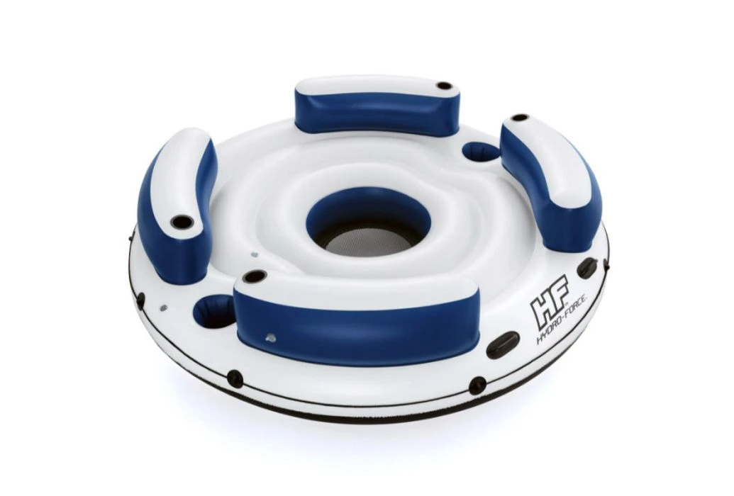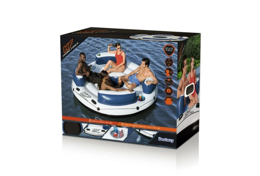 De Bestway Hydro Force Lazy Dayz is een drijvend eiland welke geschikt is voor 4 personen. De loungeband is uitgerust met 4 rugleuningen met daarin ingebouwde bekerhouders, 2 handvaten, 2 bewaarvakken en een grijpkoord rondom de band.Â