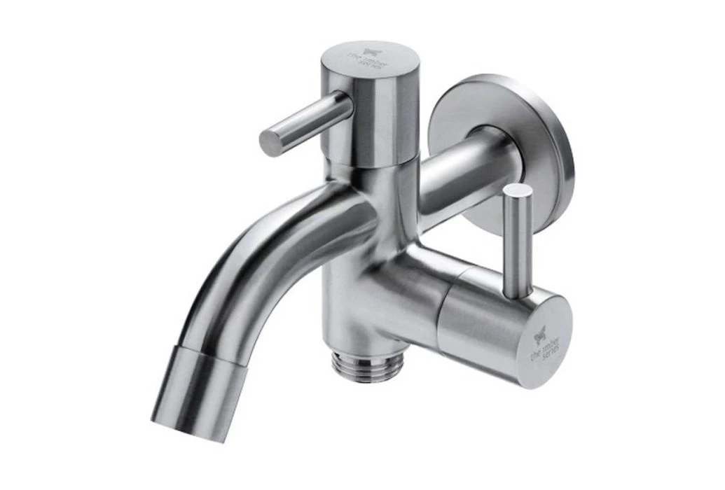 Deze Caprea Buitenkraan wandopbouw Twin 1/2″ RVS heeft twee verschillende uitstroompunten, die apart of tegelijk gebruikt kunnen worden. Aan de onderkant van de kraan kun je een tuinslang aansluiten. De beide uitstroompunten kunnen apart worden bediend. Deze RVS kraan heeft een aansluiting van 1/2″ en ook nog een extra aansluiting van 1/2″ aan de onderkant. De extra aansluiting is voor een tuinslang.