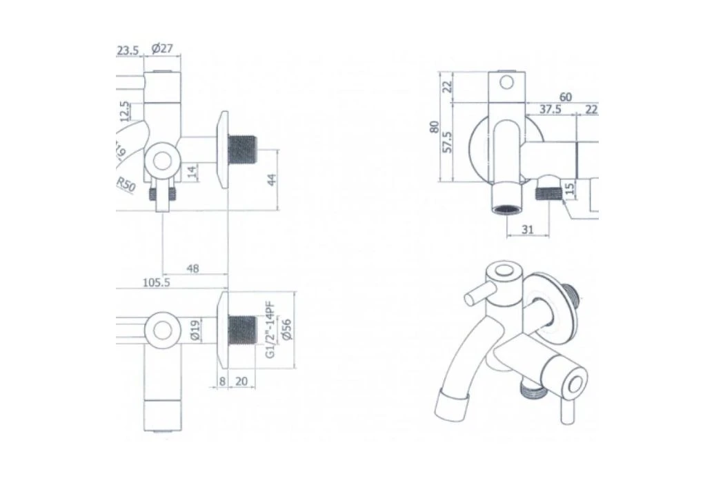 Kenmerken Caprea Buitenkraan wandopbouw Twin 1/2″