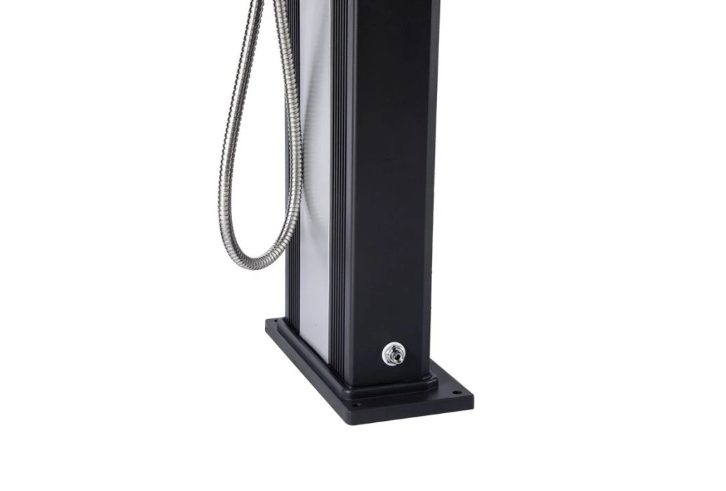 Daarnaast heeft de douche een warmwateraansluiting. Wanneer er niet genoeg zon is om je water op te warmen zou je hiermee warm water uit het huis kunnen aanvoeren naar de douche. Hierdoor krijg je nooit een koude douche.