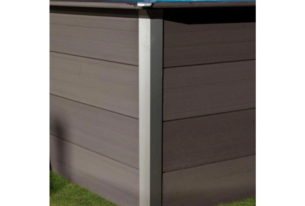 De baden van het merk Gré zijn gemaakt van speciale composiet panelen. Deze worden gemaakt door middel van een combinatie van hout en PVC. Naast dat dit er erg mooi en modern uitziet, is het ook nog eens bijzonder stevig. Het Avantgarde zwembad dient bovengronds, direct op het beton te worden gemonteerd met behulp van wiggen. Het zwembad heeft aan de binnenzijde een trap die is gemaakt van RVS en aan de binnenzijde een trap van composiet.