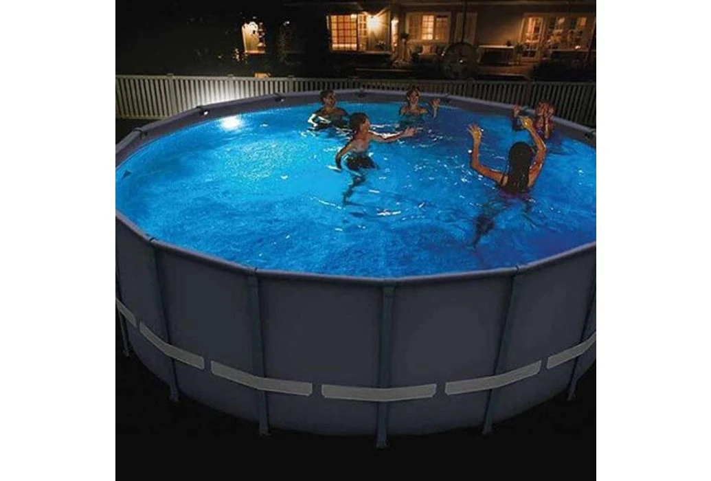 Veiligheid is zeer belangrijk wanneer het gaat over water en electriciteit. Daarom is deze magnetische LED zwembadverlichting van Intex voorzien van een 12 volt omvormer. Hiermee wordt de 230 volt die uit het stopcontact komt omgezet in 12 volt, een veel veiligere voltage, voor het de lamp bereikt. De spanning wordt via de magnetische technologie via de zwembadwand aan de lamp doorgegeven waardoor de LED zwembadlamp aan gaat.