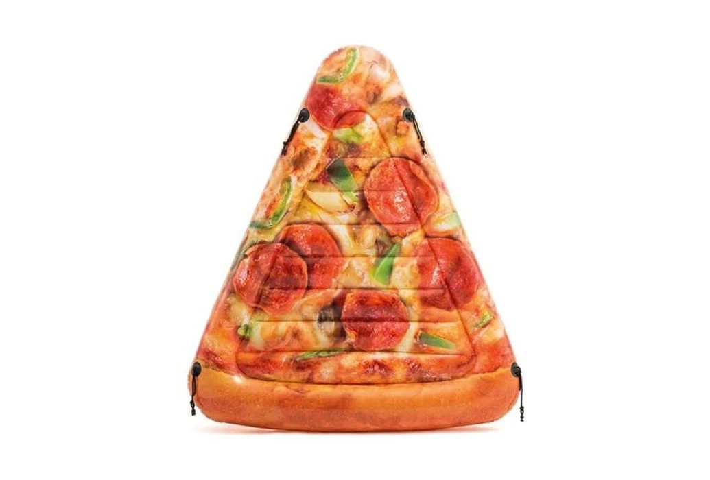 Heerlijk drijven op een pizzapunt? Deze opblaasbare pizzapunt is een echte eye-catcher en een grote hit deze zomer! De pizzapunt ziet er zeer realistisch uit en is extra leuk met familie en vrienden: maak meerdere pizzapunten aan elkaar vast met de 4 bevestigingspunten om een complete pizza te creëren!Â