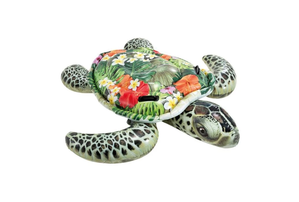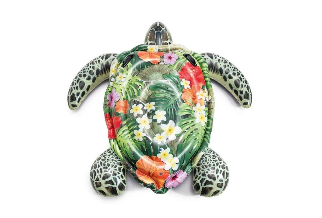 Drijf mee op de rug van deze schattige schildpad en geniet van het samen spelen in het zwembad.