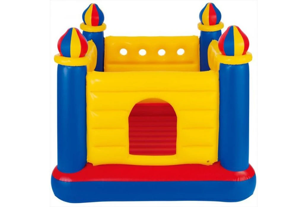 Een opblaasbare trampoline hebben je kinderen urenlang plezier van. Dit vrolijke en kleurijke kasteel is voor kinderen van 3 tot 6 jaar. Je kan het kasteel in de woonkamer plaatsen maar ook in de tuin. Het maximale belastbare gewicht is 54 kilo en er mogen maximaal 2 personen erop. De trampoline beschikt over een zachte bodem.
