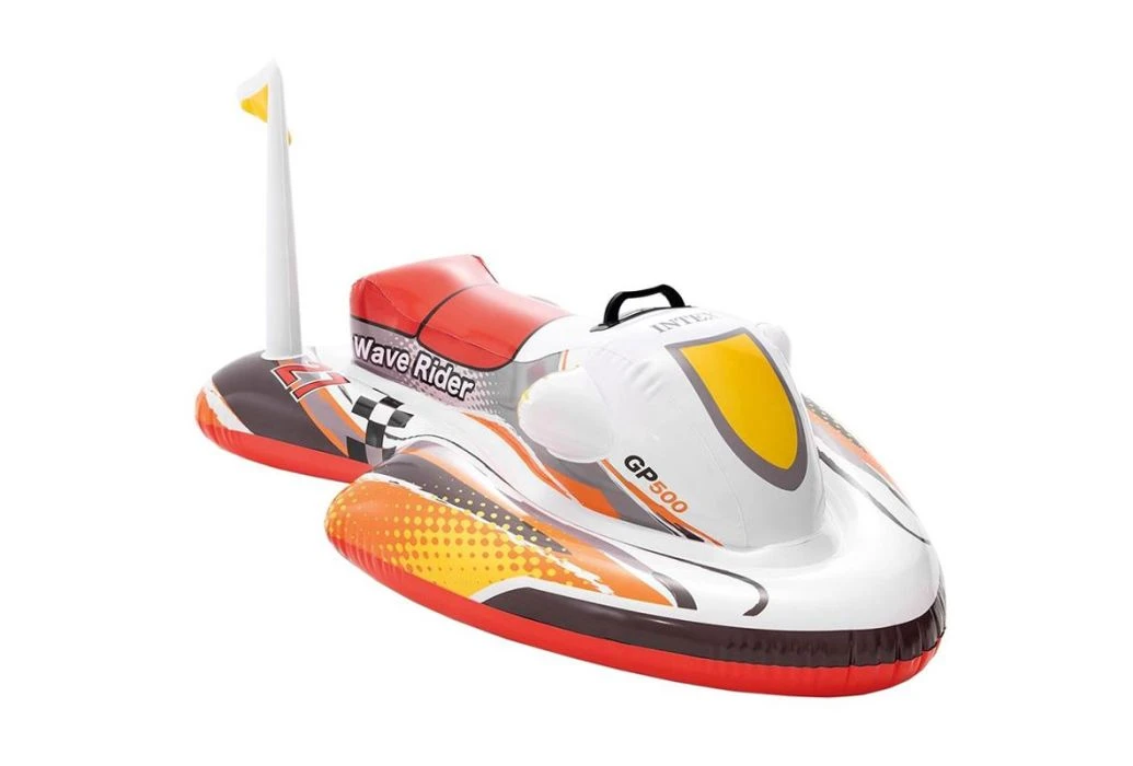 Maak de blits op het water met deze opblaasbare waterscooter! De Intex opblaasbare waterscooter heeft een stoer design en hiermee scheur je over het water. De waterscooter, ofwel jetski, is breed opgebouwd waardoor deze perfect in het water ligt.