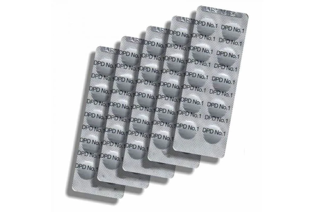 Splash-X 50 x DPD1 tabletten tabletten voor fotometer voor diverse testers. DPD-1 tabletten geeft je inzicht in de vrije chloorwaarde (hoeveel werkend / desinfecterend chloor bevat je water) van je zwembad- of spawater. Je kunt deze tabletten gebruiken voor bijvoorbeeld de Lovibond Scuba II of de Lovibond Oranje testset.