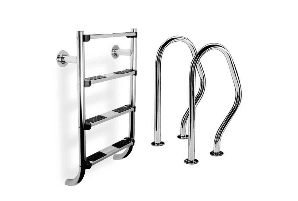 Onze zwembadtrappen zijn allen gemaakt van RVS, hierin onderscheiden we twee kwaliteiten. Deze kwaliteiten zijn AISI 304 en AISI 316. Een zwembadtrap van AISI 304 is geschikt voor een zwembad met een chloor waterbehandeling. Als je een zoutwater zwembad hebt, dan adviseren wij om een zwembadtrap van AISI 316 te gebruiken. Deze RVS kwaliteit is beter bestand tegen de effecten van het zoute water, een AISI 304 zal naar verloop van tijd eerder gaan roesten in tegenstelling tot een trap van AISI 316. Hier is de kans op roest vele malen kleiner, maar door de effecten van het zout is dit nog wel mogelijk.